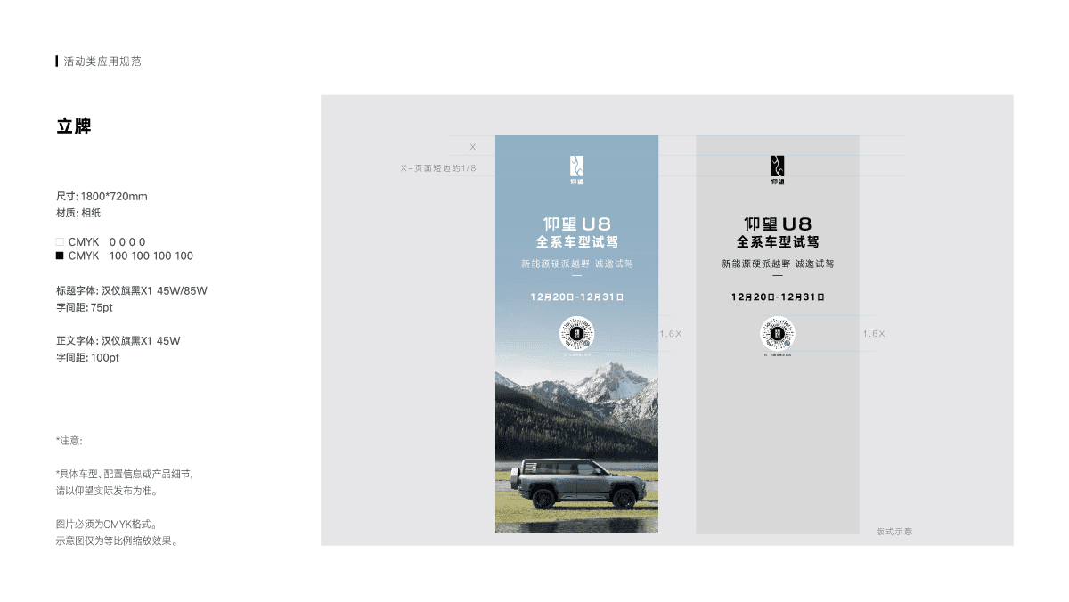 仰望汽车是比亚迪集团承载二十年技术积淀的高端品牌。作为品牌早期的核心设计师之一,我参与制定了首版《仰望品牌视觉识别系统》,为品牌从0到1的传播与运营奠定了统一的视觉基石。